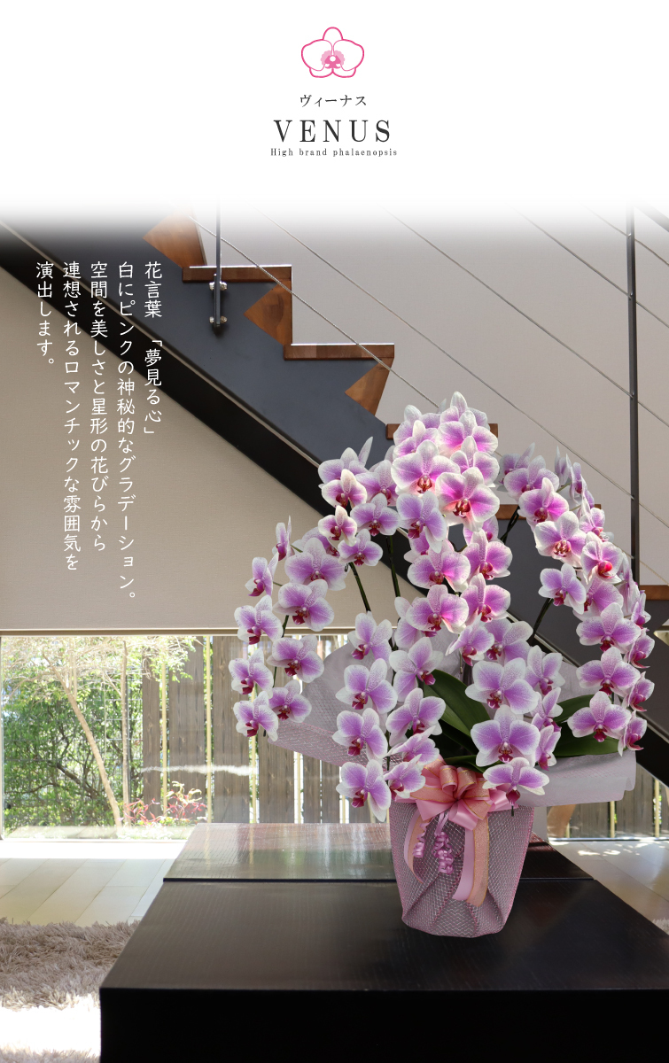 純国産の胡蝶蘭 完全国内生産の胡蝶蘭 最高品質 花持ち期間長い 花弁の肉厚 大輪 中輪 ミディ 星形花弁のヴィーナス