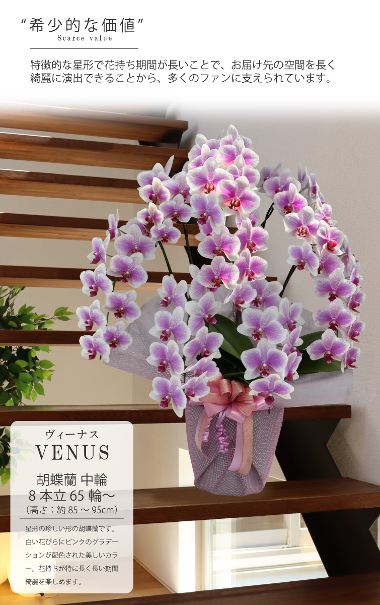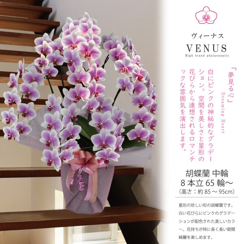 胡蝶蘭 花持ち長い 中輪 8本立ち 65輪〜 白ピンク グラデーション ヴィーナス 画像配信あり ブランド胡蝶蘭 お祝い プレゼント 花 ギフト 贈り物 お誕生日 長寿祝い 開店祝い 開業祝い 移転祝い 就任祝い 昇進祝い 当選祝い 当日発送 王立園芸協会登録商品