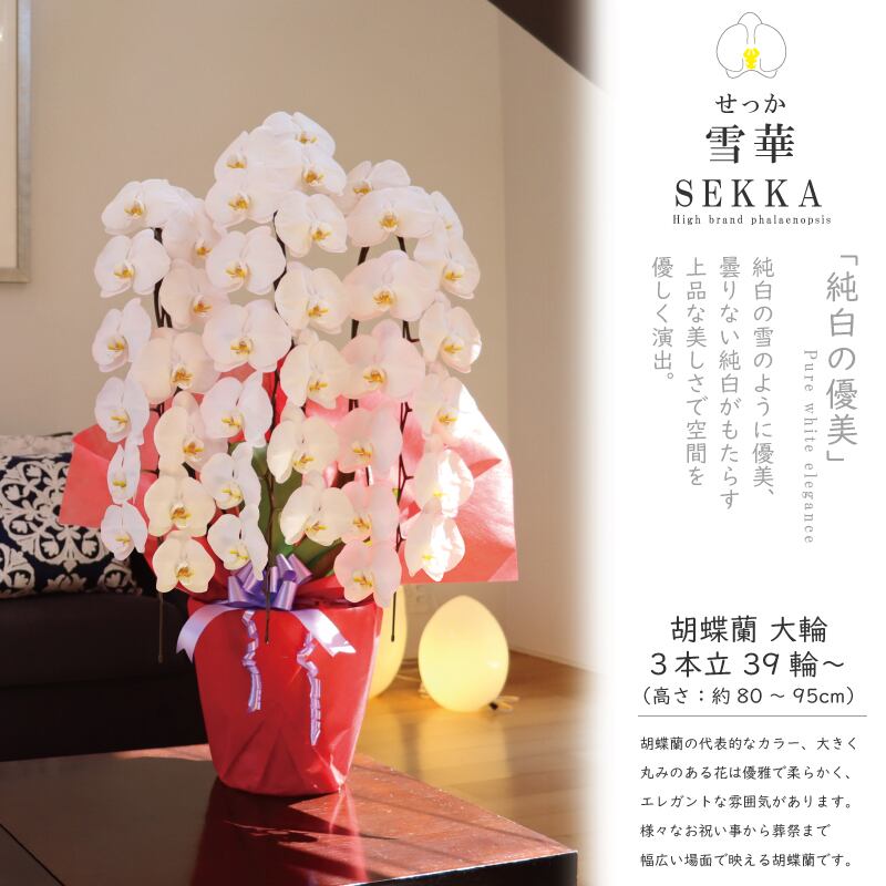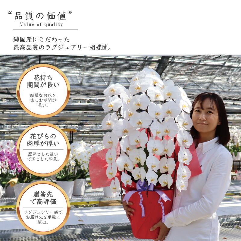 胡蝶蘭 花持ち長い 純国産 大輪3本立ち 39輪~ 【雪華(せっか)白】 画像配信あり 産地直送 お祝い プレゼント 花 ギフト 贈り物 お供え お誕生日 開店祝い 開業祝い 移転祝い 就任祝い 昇進祝い 当選祝い 当日発送 王立園芸協会登録商品