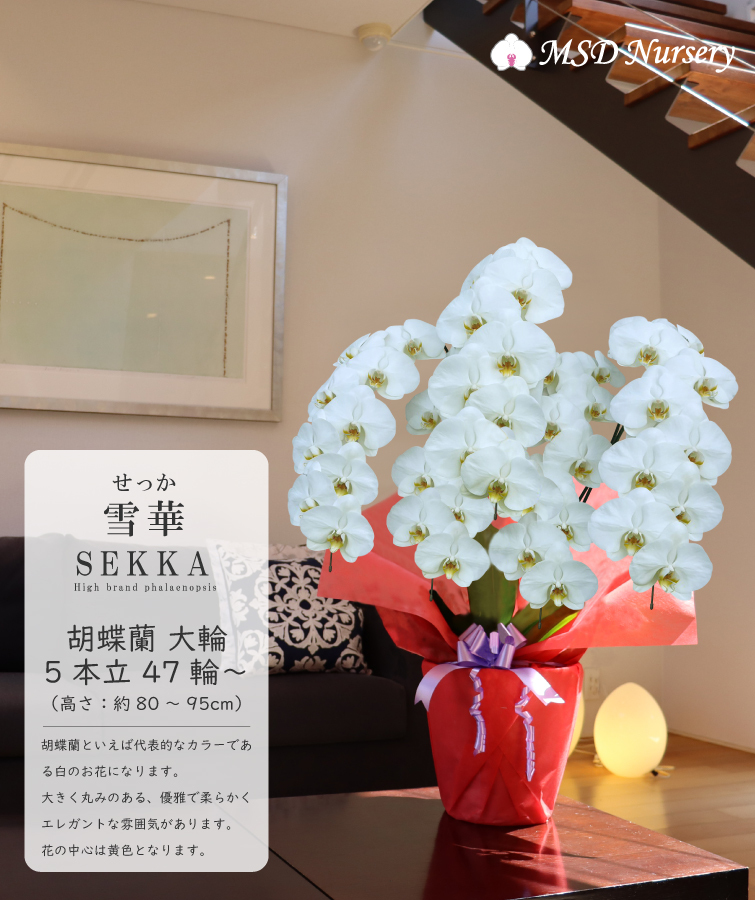 胡蝶蘭 花持ち長い 純国産 大輪5本立ち 47輪~ 【雪華(せっか)白】 画像配信あり 産地直送 お祝い プレゼント 花 ギフト 贈り物 お供え お誕生日 開店祝い 開業祝い 移転祝い 就任祝い 昇進祝い 当選祝い 当日発送 王立園芸協会登録商品