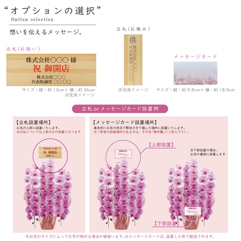 ラッピング、立札、メッセージカードのお好みのデザインの「選択コード」をお選び下さい。