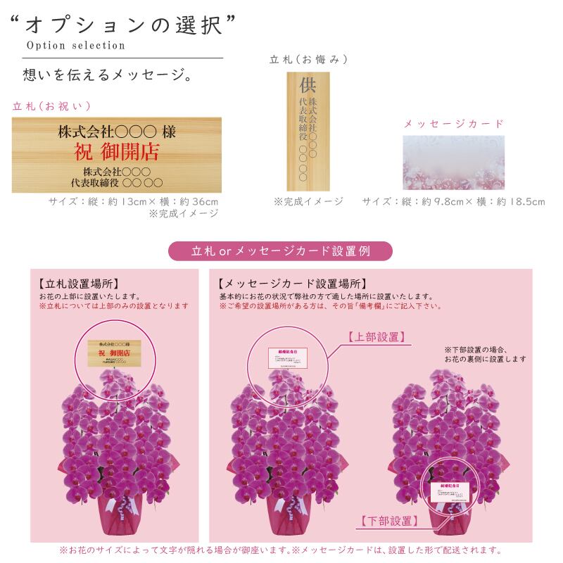 ラッピング、立札、メッセージカードのお好みのデザインの「選択コード」をお選び下さい。