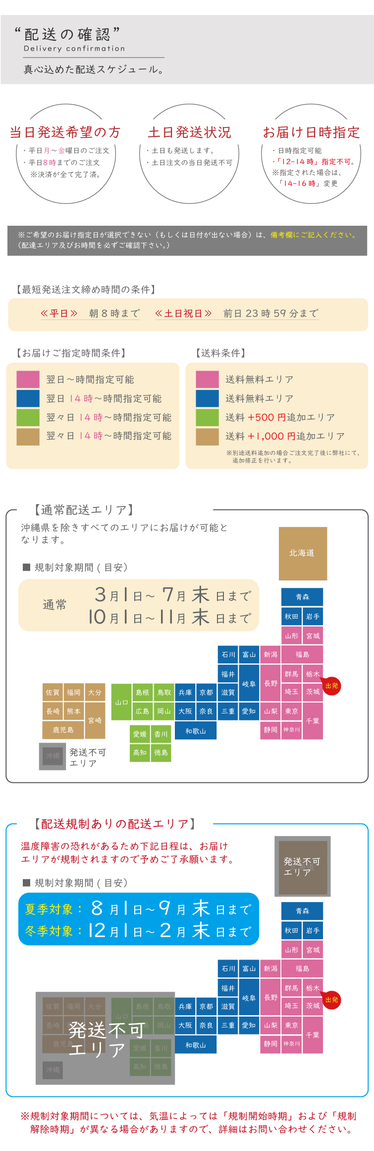 ・システムの都合上、ご注文後に金額の修正が出来ませんので、追加送料対象地域へのお届けにも拘らずご選択がない場合は一度キャンセルしご注文をし直して頂くお手間が発生してしまうので必ずご選択ください。