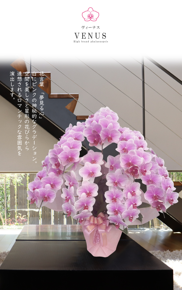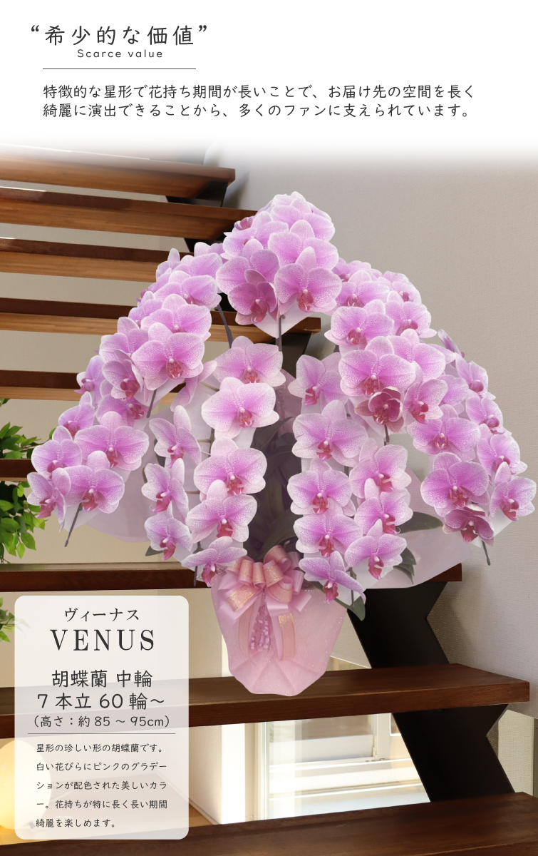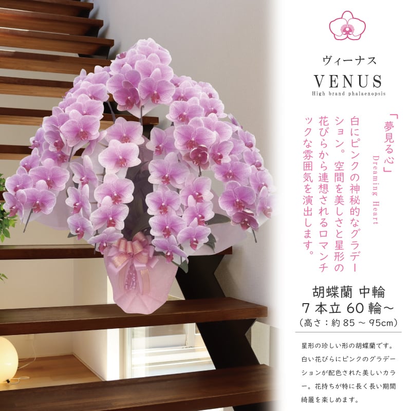胡蝶蘭 花持ち長い 中輪 7本立ち 60輪〜 白ピンク グラデーション ヴィーナス 画像配信あり ブランド胡蝶蘭 お祝い プレゼント 花 ギフト 贈り物 お誕生日 長寿祝い 開店祝い 開業祝い 移転祝い 就任祝い 昇進祝い 当選祝い 当日発送 王立園芸協会登録商品